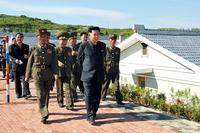 金正恩观看跟长在岛防御队一模一样地新建的茂岛英雄防御队的兵营、住宅和阵地,仔细了解建设情况和要塞化情况。