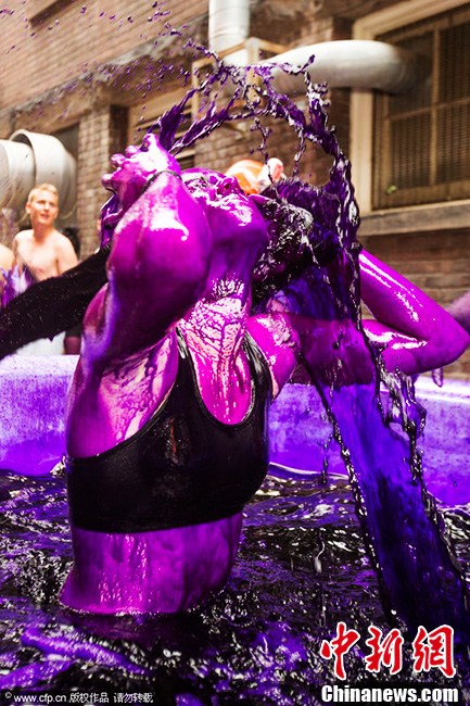 当地时间2013年9月2日,加拿大安大略省,多伦多大学的新生被涂成了紫色,快乐入学。染色将大约在一周左右的时间内消退。图片来源:CFP视觉中国