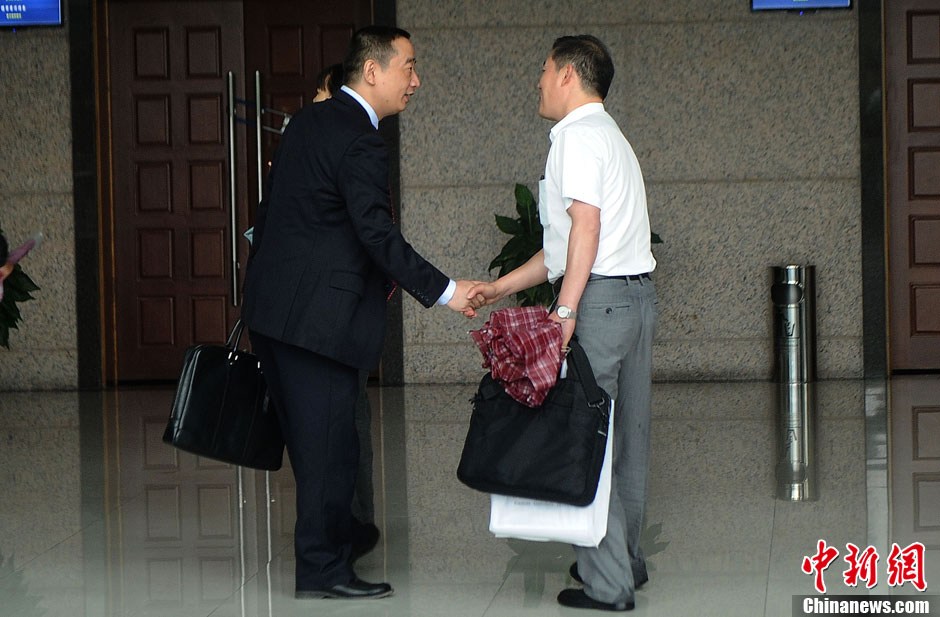 9月5日,备受关注的重庆不雅视频案件二审在重庆市第一中级人民法院不公开开庭审理。图为赵红霞的代理律师与许社卿的代理律师李春富在法院内握手。陈超 摄