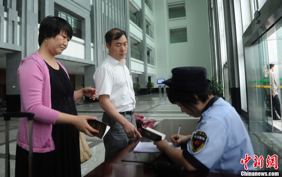 9月5日,备受关注的重庆不雅视频案件二审在重庆市第一中级人民法院不公开开庭审理。图为许社卿的代理律师李春富(左二)进入法院。陈超 摄