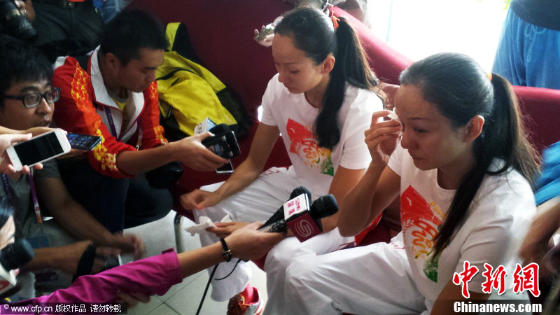 2013年9月5日,大连,2013全运会第5日,无缘花游女子双人项目金牌的四川队名将蒋文文、蒋婷婷以个人名义召开发布会,就昨晚仲裁问题发表看法。姐妹俩认为昨天的比赛涉嫌暗箱操作,预赛表现更好地她们却无缘冠军,二人希望得到公正的对待,之所以这么做,是为了花游的发展考虑。图片来源:CFP视觉中国