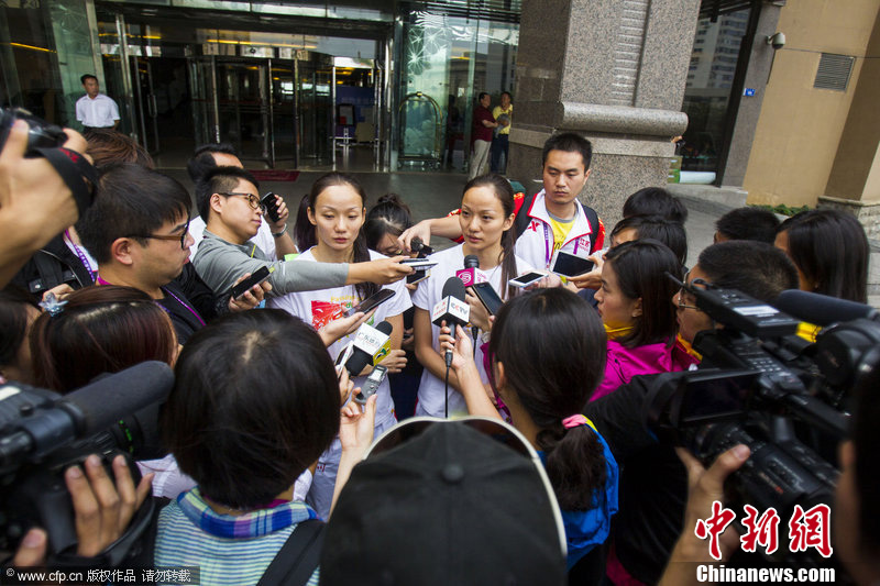 2013年9月5日,大连,2013全运会第5日,无缘花游女子双人项目金牌的四川队名将蒋文文、蒋婷婷以个人名义召开发布会,就昨晚仲裁问题发表看法。姐妹俩认为昨天的比赛涉嫌暗箱操作,预赛表现更好地她们却无缘冠军,二人希望得到公正的对待,之所以这么做,是为了花游的发展考虑。图片来源:CFP视觉中国