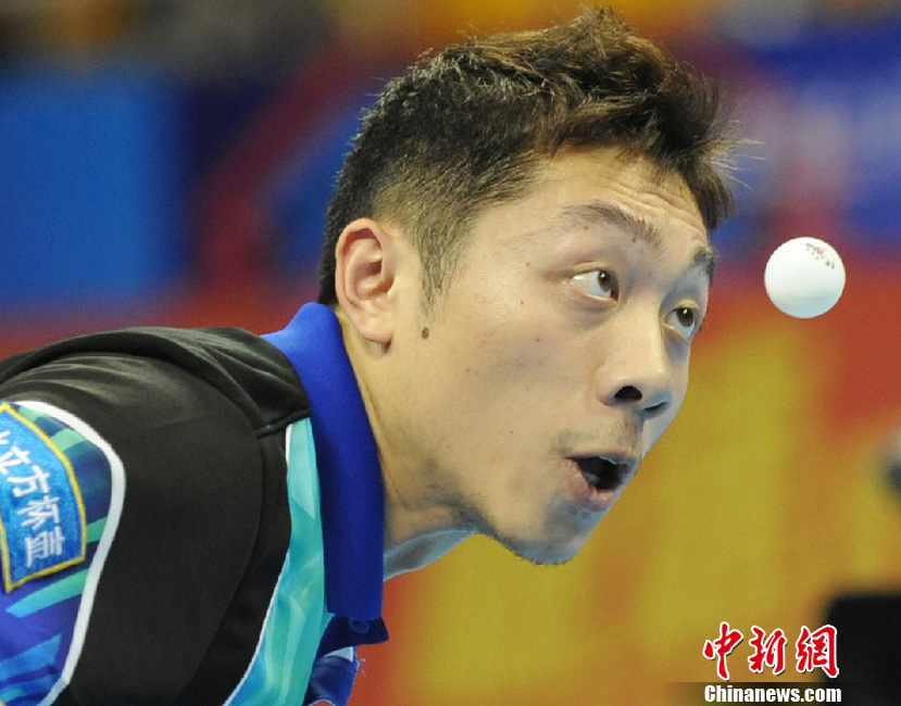 9月5日,第十二届全运会乒乓球男团决赛在辽宁鞍山举行。上海队选手许昕在第四盘的比赛中0:3输给解放军的王皓。最终,上海队以1:3不敌解放军获得亚军。中新网记者 李美多 摄