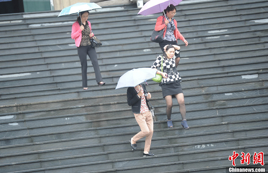 9月6日,备受关注的涉不雅视频官员、重庆市北碚区原区委书记雷政富涉嫌受贿在重庆市高级人民法院二审开庭。当日下午6时许,全部庭审结束,法院将择日宣判。图为雷政富的妻子雨伞遮脸冲忙离开(第一个)。陈超 摄