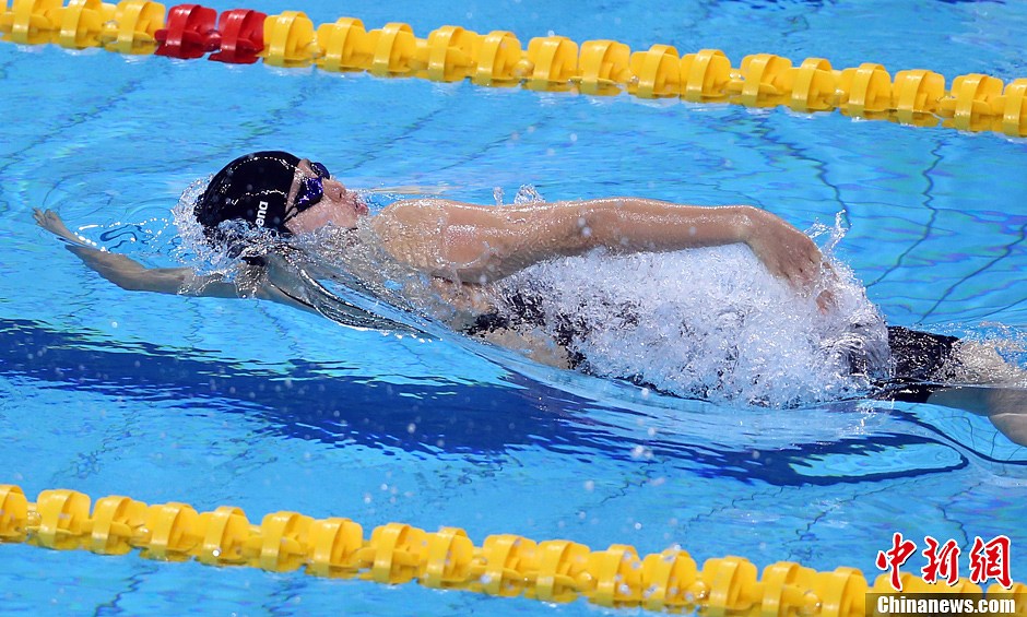 9月6日,在沈阳举行的第十二届全运会女子100米仰泳决赛中,来自浙江队的傅园慧获得冠军。中新社发 张家瑞 摄