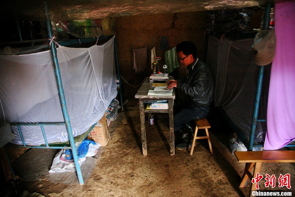 乃拖村小学地处四川凉山彝族自治州昭觉县崇山峻岭中,9月6日,一名志愿者在学校宿舍备课。高寒 摄