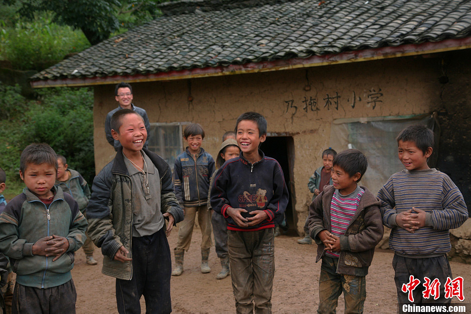 乃拖村小学地处四川凉山彝族自治州昭觉县崇山峻岭中,9月6日,课后老师和学生一起游戏。高寒 摄