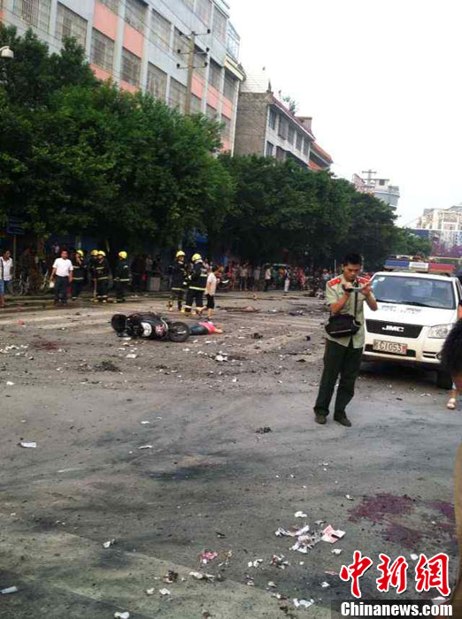 公安、消防、医务人员正在开展救援工作。受伤人员已被送往附近医院救治。爆炸原因还在调查中。彭群 摄