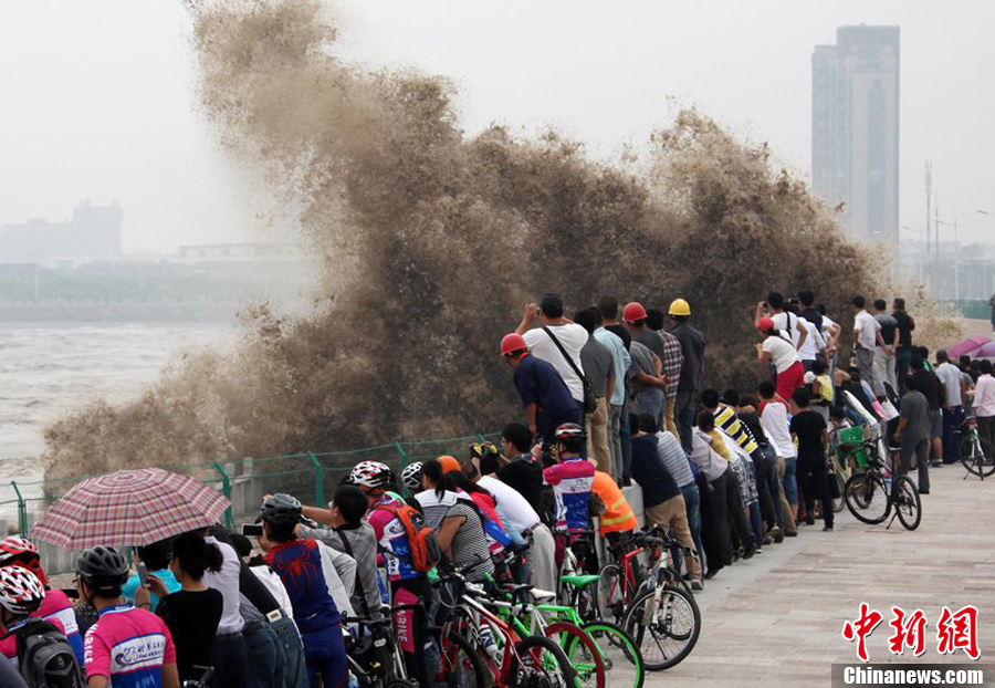 浙江海宁秋潮凶猛壮观