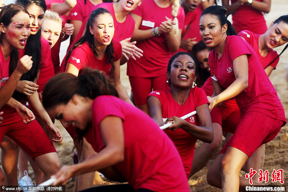 当地时间2013年9月10日,印尼巴厘岛,世界小姐大赛举行,来自各国的美女们在海滩参加竞赛。图片来源:CFP视觉中国