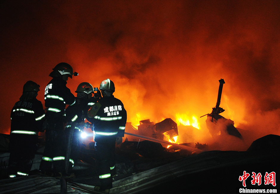 成都双流一仓库发生大火 消防官兵火场灭火