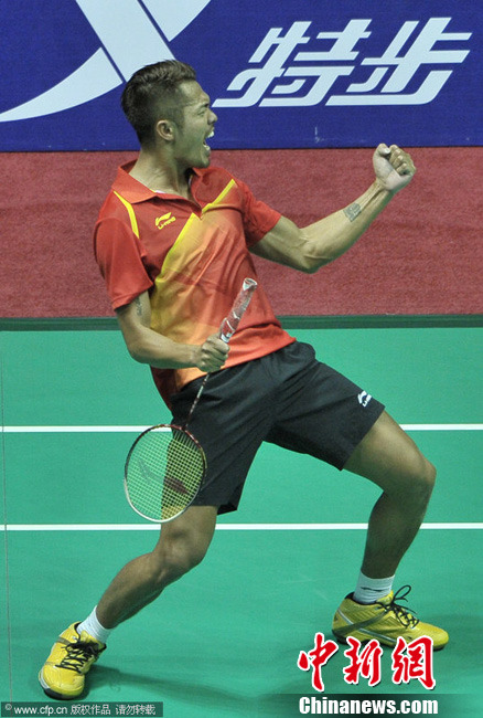 9月11日,全运羽毛球男单决赛。林丹以2比0轻取杜鹏宇夺取男单冠军,实现了全运会三连冠。图片来源:CFP视觉中国