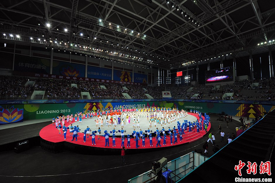 9月12日,第十二届全运会闭幕式在沈阳奥体中心综合馆举行。闭幕式延续开幕式风格,没有文艺表演,穿插进行一些武术、团体操等表演。中新社发 于海洋 摄