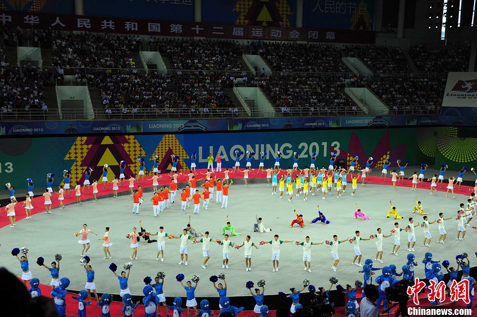 9月12日,第十二届全运会闭幕式在沈阳奥体中心综合馆举行。闭幕式延续开幕式风格,没有文艺表演,穿插进行一些武术、团体操等表演,全面体现全民健身的宗旨。中新社发 于海洋 摄