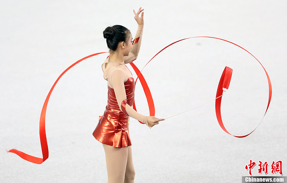 9月12日,在沈阳举行的第十二届全运会圆满闭幕。艺术体操表演。中新社发 张家瑞 摄