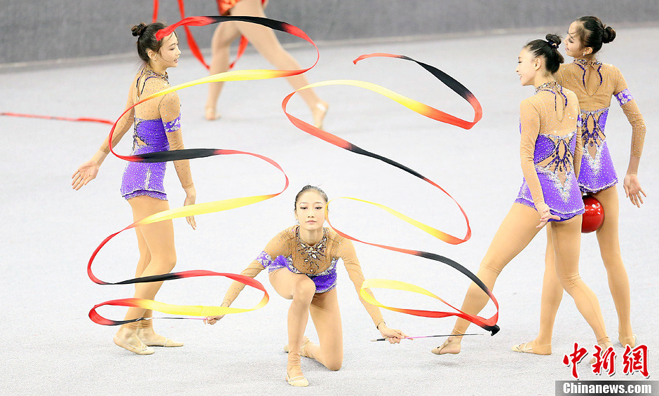 9月12日,在沈阳举行的第十二届全运会圆满闭幕。艺术体操表演。中新社发 张家瑞 摄