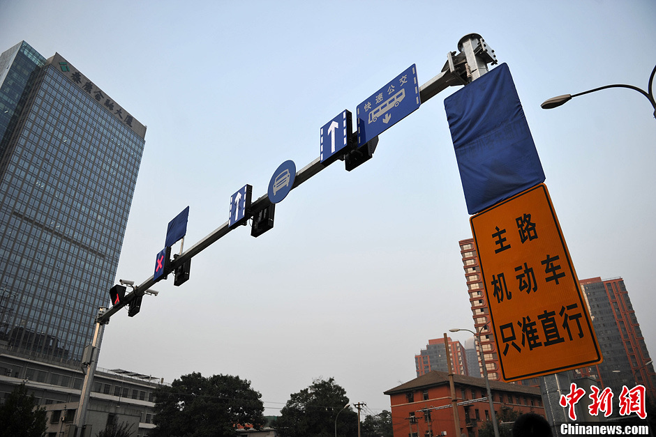 9月12日下午,为了应对晚高峰的出行,科学引导与缓解交通压力,北京市首条潮汐车道正式开通。图为9月11日即将开通的潮汐车道。中新网记者 金硕 摄