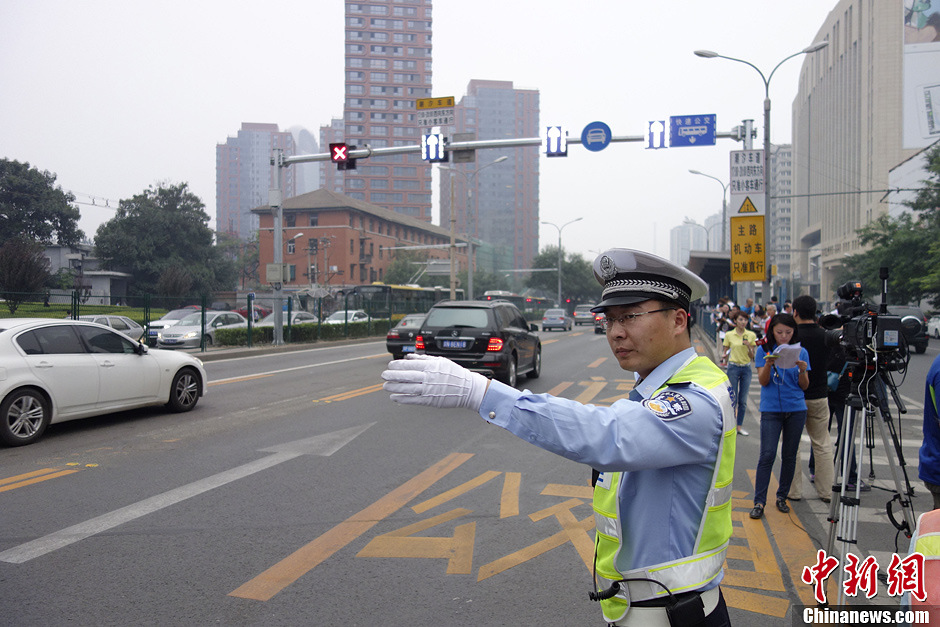 9月12日,为了应对晚高峰的出行,科学引导与缓解交通压力,北京市首条潮汐车道开通。从12日开始,每天晚高峰17点到20点,北京朝阳路京广桥至慈云寺桥主路进城方向的一条社会车道改为出城方向机动车使用,其余时段维持现状通行。中新社发 廖攀 摄