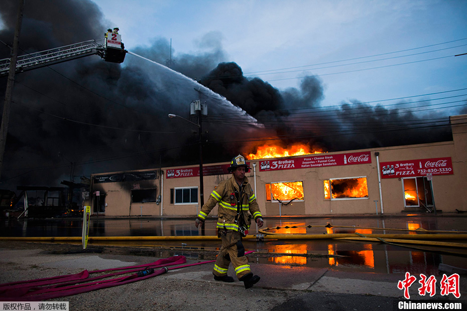 美国新泽西海滨公园发生火灾 多座店铺被烧毁