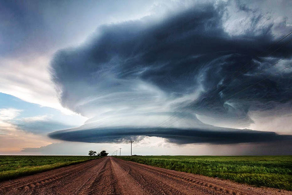 英国《每日邮电》9月11日在报道中描述了这样一幕:在辽阔的草原和寂静的公路上方,巨大的乌云层正在空中集结形成,仿佛一架太空飞船盘旋在大地的上方。世间的一切都在静候毁灭的序幕。这一幕就是超级雷雨胞形成时的景象。《每日邮电》刊登的一组图片,清晰地展现了超级雷雨胞在美国“龙卷风走廊”(Tornado Alley)形成时的骇人景象。图片来源:环球网