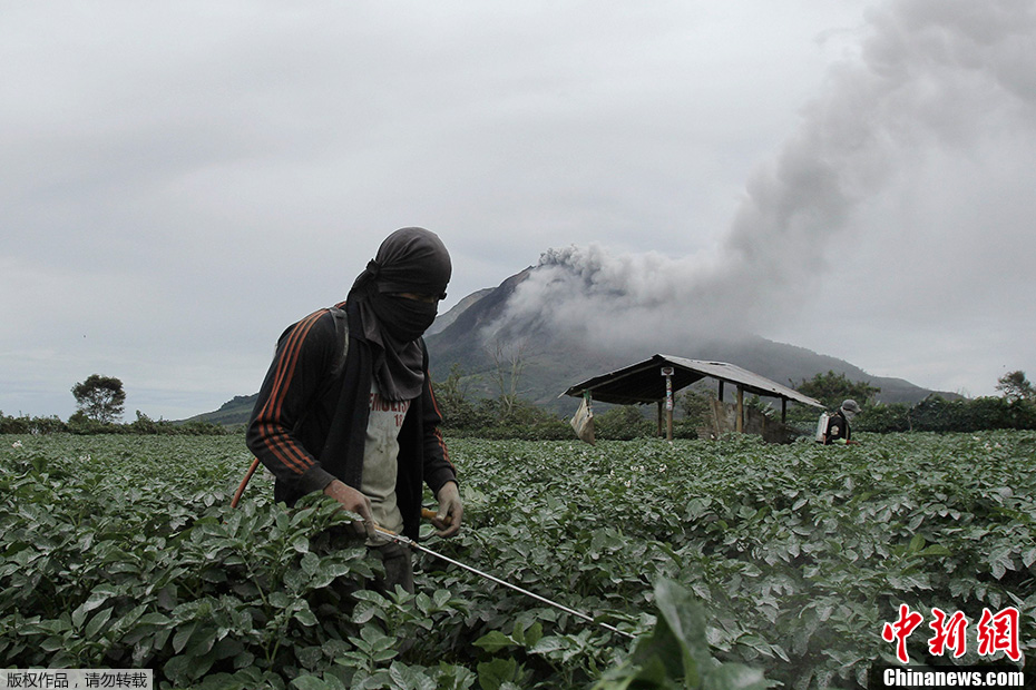印尼锡纳朋火山喷发 火山灰遮天蔽日