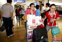9月15日下午,部分因“海娜号”邮轮被扣韩国而滞留的中国旅客抵达北京。图片来源:CFP视觉中国