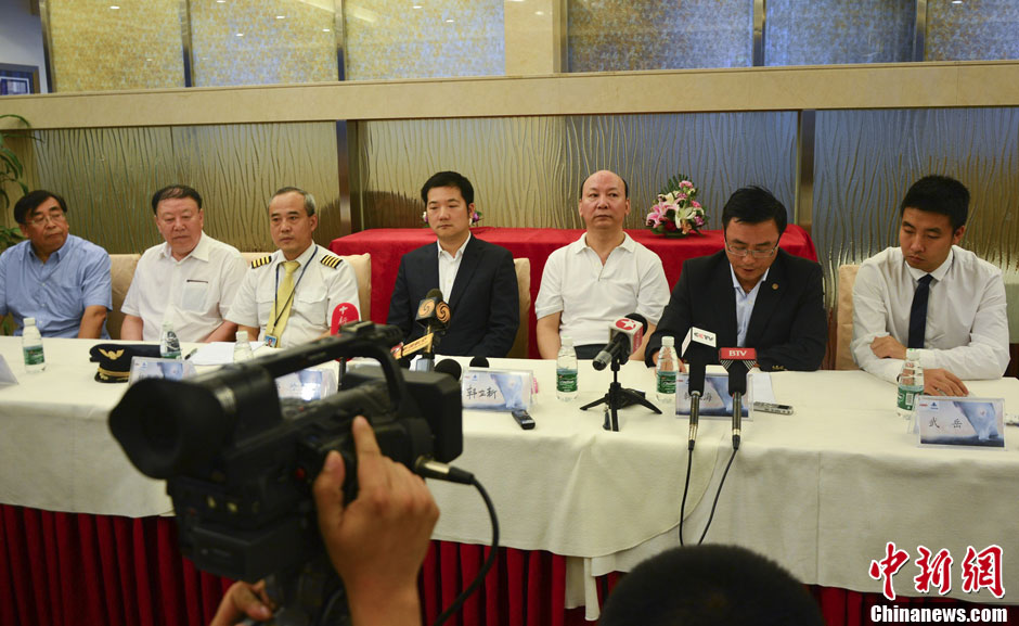 9月15日,海航集团就“海娜”号邮轮滞留韩国事件召开发布会,海航旅业董事长张岭、海航旅业副董事长韩立新、海航邮轮游艇管理公司董事长韩录海、接回滞留旅客的航班机长及旅客代表参加。中新社发 丁栋 摄