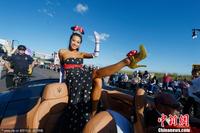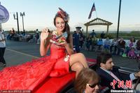 美国小姐参赛者街头巡游 炫彩礼服吸引眼球