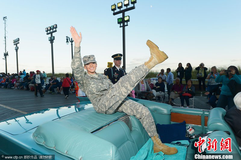 美国小姐参赛者街头巡游 炫彩礼服吸引眼球