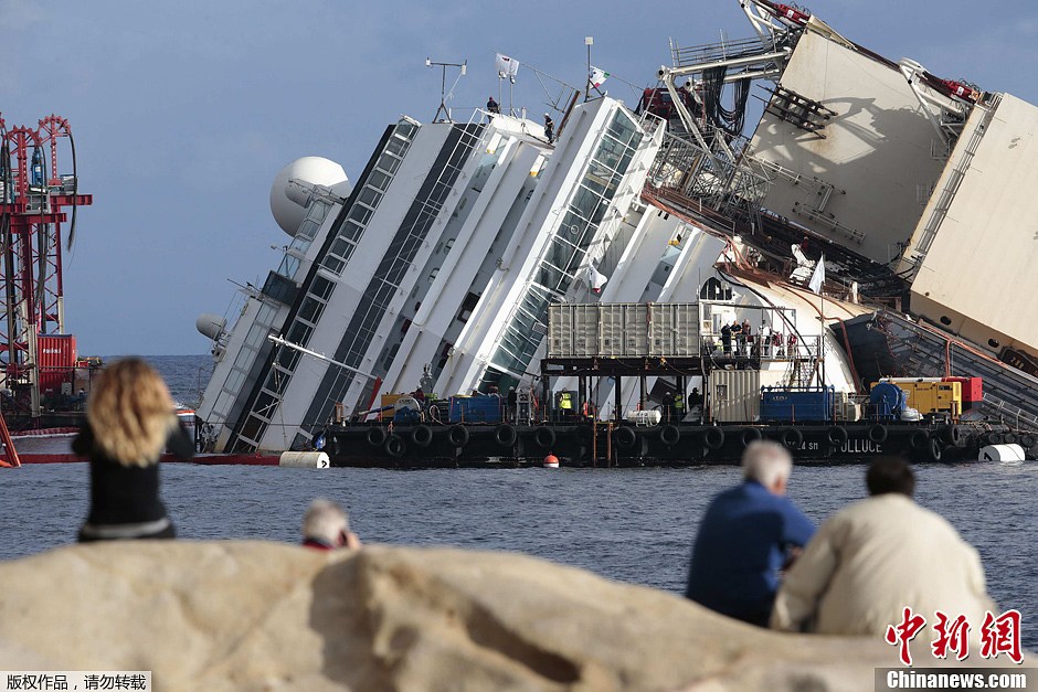 意大利耗资5亿英镑扶正倾覆豪华邮轮