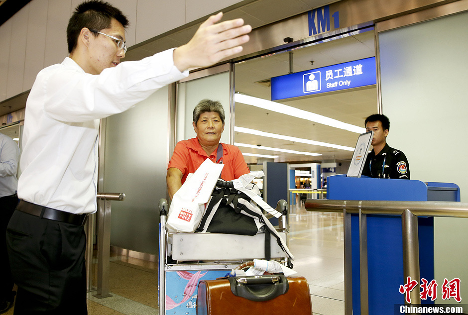 9月16日,被海南航空接回的海娜号邮轮滞留济州的旅客从北京首都国际机场T2航站楼员工通道走出。这是海航派出的第6架执飞航班,共搭载旅客288人。目前,邮轮下船人数为446人,船上还有92名旅客。中新社发 刘关关 摄