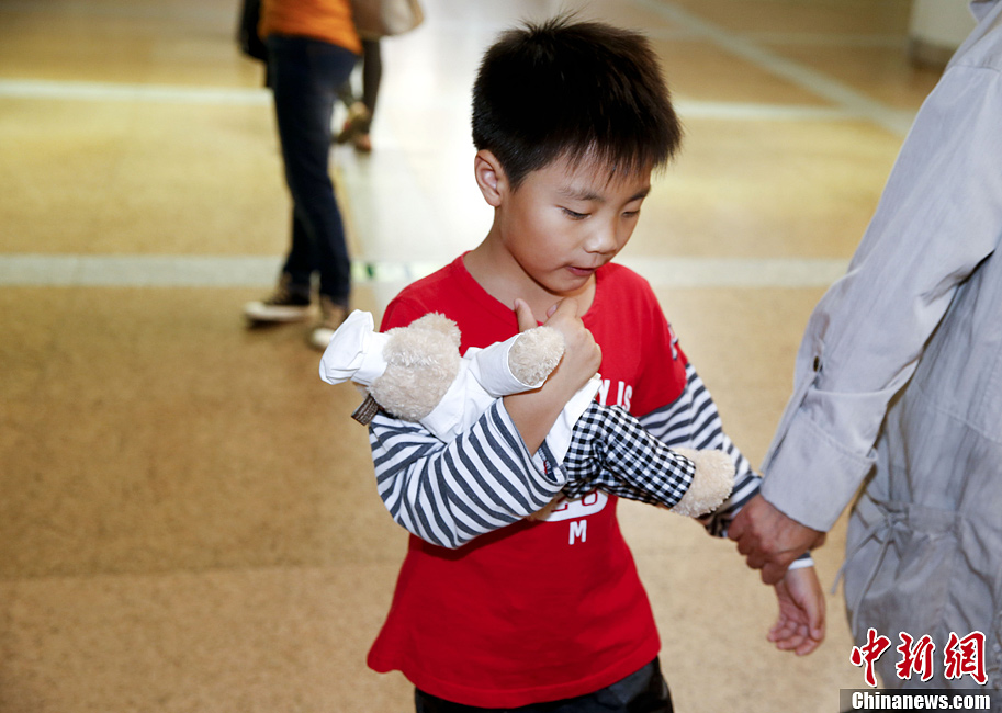 9月16日,被海南航空接回的海娜号邮轮滞留济州的旅客从北京首都国际机场T2航站楼员工通道走出。这是海航派出的第6架执飞航班,共搭载旅客288人。目前,邮轮下船人数为446人,船上还有92名旅客。中新社发 刘关关 摄