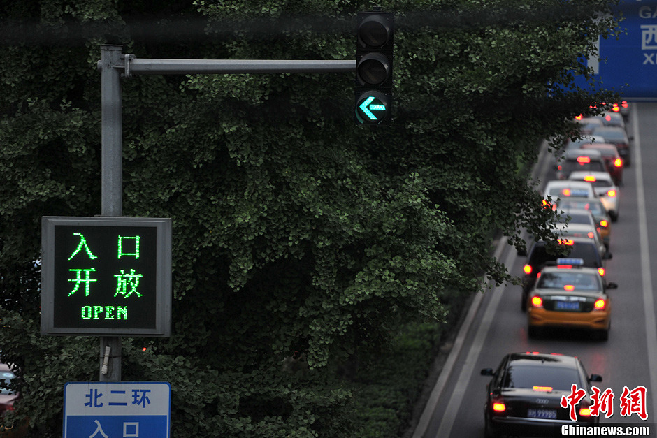 9月16日晚,北京二环路西直门桥区附近出现拥堵,车辆行驶缓慢,城区各主干道车流也较往日略有上升。当日至18日,北京将迎来连续三天的“拥堵日”,早晚高峰时,城区道路将达到“严重拥堵”状态。图为西直门桥二环路主路双方向车多行驶缓慢。中新网记者 金硕 摄