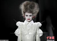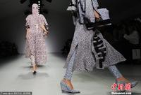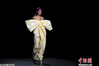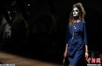 当地时间9月15日,西班牙马德里时装周,模特展示服装作品。