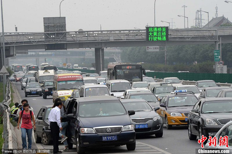 2013年9月17日,北京,中秋节前尾号4、9限行的工作日,路上车多再加之降雨,曾被预测为最堵周中的最堵日,交通指数峰值将达到9以上。刘畅 摄 图片来源:CFP视觉中国