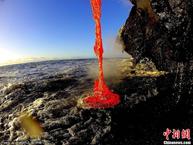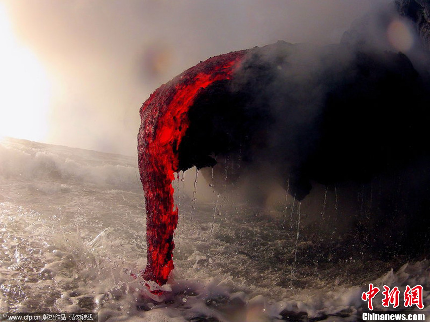 9月17日消息,这些令人惊叹的照片显示夏威夷岛上岩浆流过山体进入海洋的景象,在普通的岩浆照片中,不太可能看到这样的景象,因为距离岩浆如此之近拍照十分危险。摄影师Kawika Singson在拍摄过程中,经历了极大的危险。图片来源:CFP视觉中国
