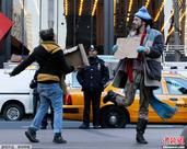 9月17日,一名抗议者在纽约华尔街附近举行示威活动。当天,美国“占领华尔街”运动抗议者聚集在纽约曼哈顿金融区举行抗议活动,以纪念这场运动两周年。中新社发 阮煜琳 摄