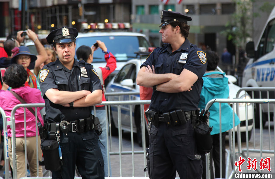 9月17日,纽约警察在华尔街执勤。当天,美国“占领华尔街”运动抗议者聚集在纽约曼哈顿金融区举行抗议活动,以纪念这场运动两周年。中新社发 阮煜琳 摄