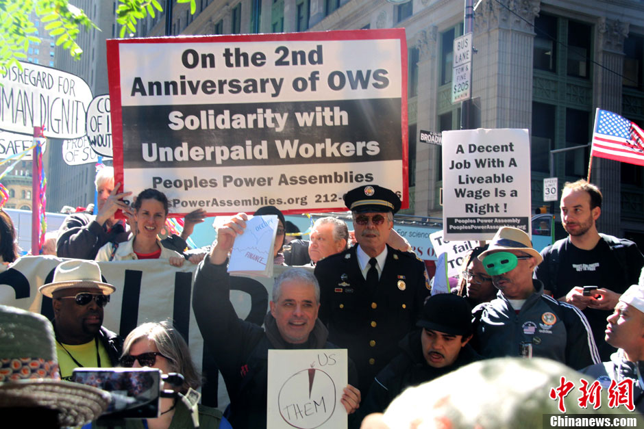 美“占领华尔街”示威两周年 大批抗议者“重聚”