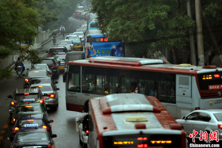 9月18日上午,早高峰北京环路多条路网行驶缓慢,东二环、东三环持续车多。图为东二环早高峰车辆行驶缓慢。中新网记者 金硕 摄