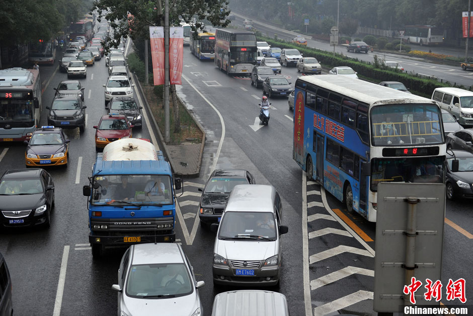 9月18日上午,早高峰北京环路多条路网行驶缓慢,东二环、东三环持续车多。图为东三环早高峰车辆行驶缓慢。中新网记者 金硕 摄