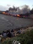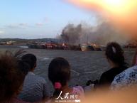 据悉,当天正刮9-10级的西北风,渔船发生火灾时正值退潮,船只周边又全是滩涂淤泥,救援船只和消防车辆都无法靠前,人们只能在岸上眼睁睁地看着大火顺着风势不断吞噬渔船。林海潮 摄 图片来源:人民网