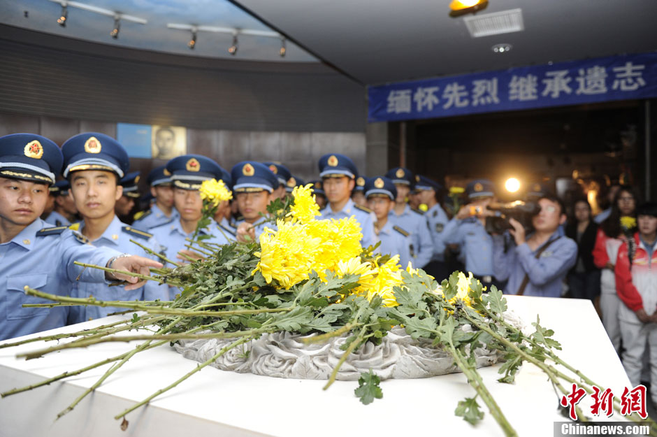 9月18日,长春各界人士向东北抗日战争牺牲烈士英雄谱献花。当天是日本发动“九·一八”事变82周年纪念日,长春上空鸣响了防空警报,社会各界开展了各种纪念活动。中新社发 张瑶 摄