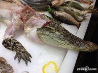 记者随后来到西安凯德广场的华润万家超市,在水产售卖区记者看到了引得大家惊奇的鳄鱼肉,标价上显示鳄鱼肉78元/斤、鳄鱼尾109元/斤、鳄鱼掌79元/斤。记者看到,一条被剥了皮的完整鳄鱼被放在冰层上,硕大的鳄鱼头和四肢上还保留着外皮,看起来有些吓人。