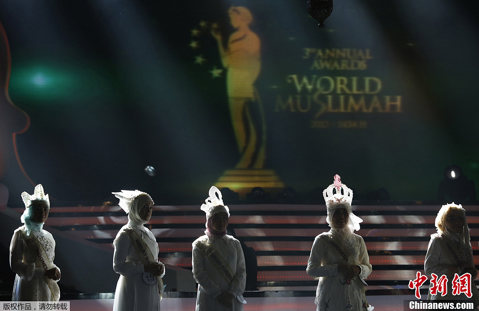 “2013年世界穆斯林小姐选美赛”于当地时间9月18日在印度尼西亚的雅加达举行,穿戴头巾的20名佳丽在诵经、伊斯兰与生活机智问答环节中进行大比拼,最后由21岁的尼日利亚佳丽奥巴比怡摘后冠。据悉,参加世界穆斯林小姐选美决赛的20名佳丽来自伊朗、马来西亚、文莱、孟加拉国、尼日利亚和印度尼西亚等国。