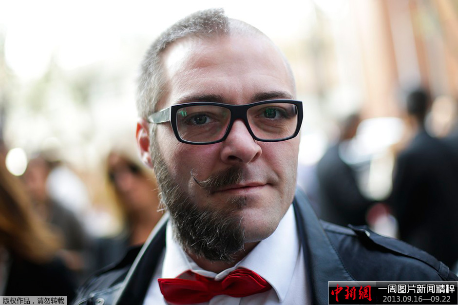 当地时间时间2013年9月20日,意大利米兰,一名男子参加米兰秋冬时装周。