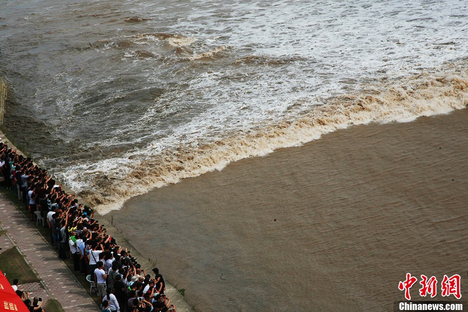浙江海宁八月十八“一线潮” 吸引十余万人围观