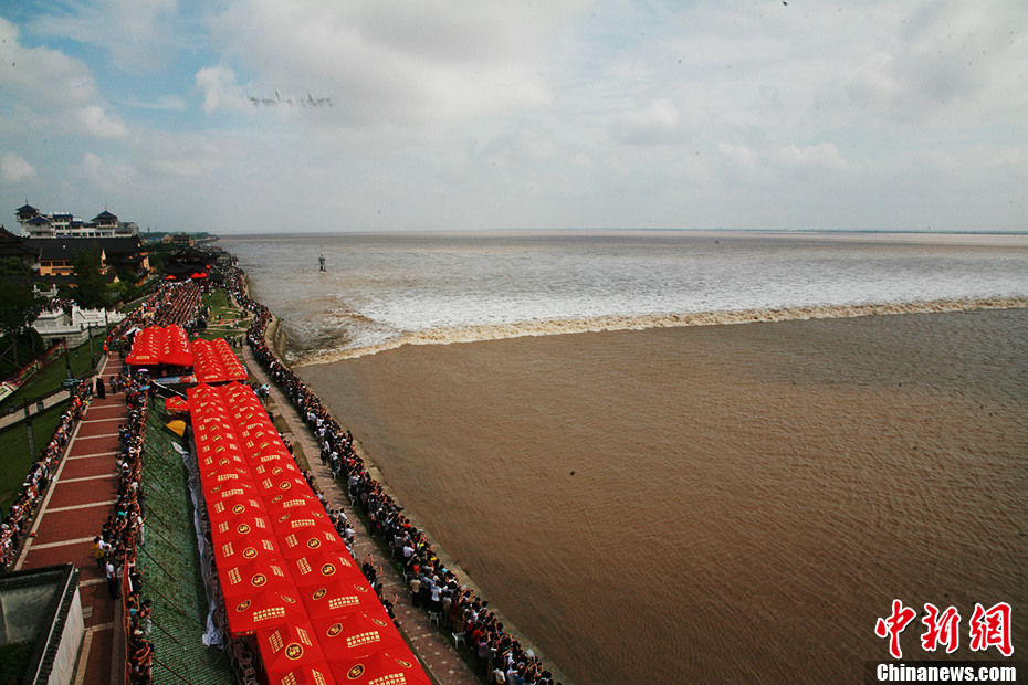 浙江海宁八月十八“一线潮” 吸引十余万人围观