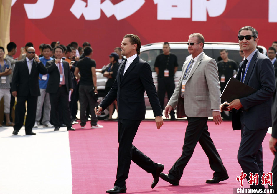 9月22日,全球投资规模最大的影视产业项目——青岛东方影都影视产业园区在青岛市西海岸新区举行了启动仪式,60余位中外巨星一一亮相,为青岛影视产业园启动造势。图为莱昂纳多·迪卡普里奥。中新社发 徐崇德 摄