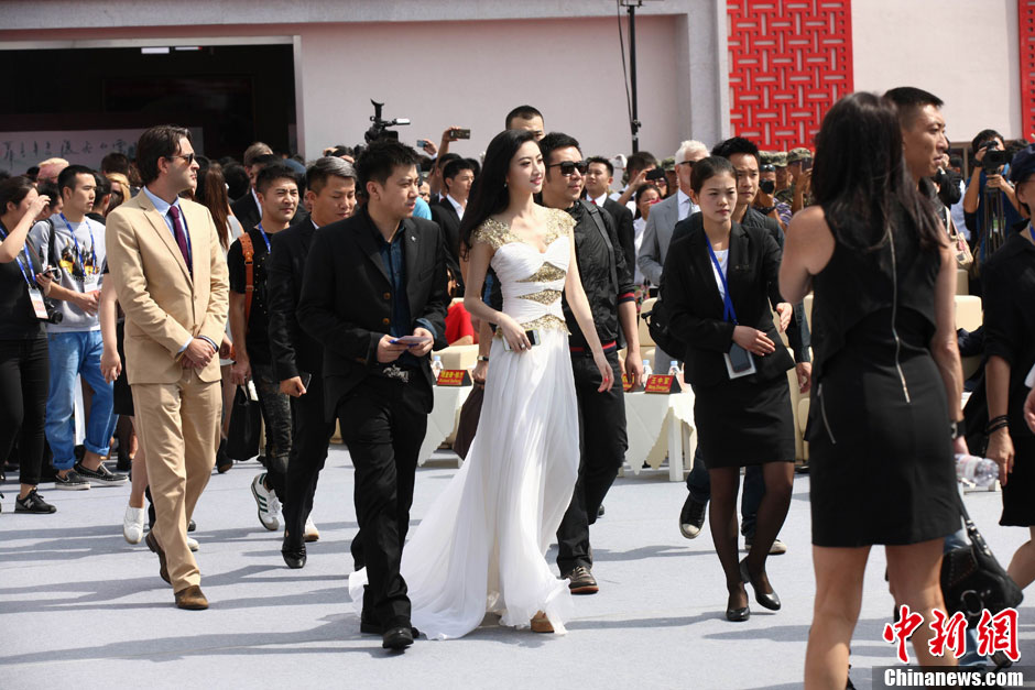 9月22日,全球投资规模最大的影视产业项目——青岛东方影都影视产业园区在青岛市西海岸新区举行了启动仪式,60余位中外巨星一一亮相,为青岛影视产业园启动造势。图为景甜。中新社发 徐崇德 摄